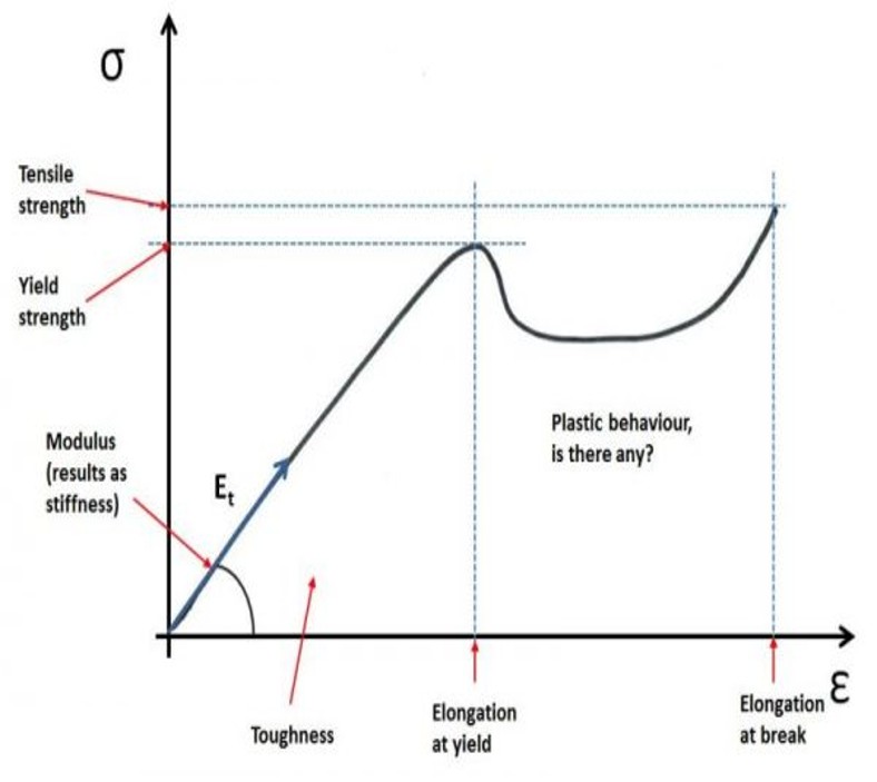 این منحنی به طراح کمک میکند نوع تغییر شکل، سختی، و انعطافپذیری ماده را بشناسد.