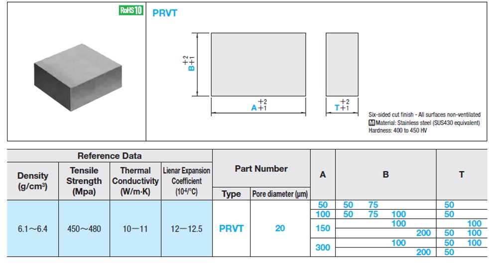 محصول اصیل شرکت MISUMI: این فولاد متخلخل، معادل محصول تجاری قدیمی با منافذ ۷ میکرون است و بهطور اختصاصی برای تهویه گاز در قالب طراحی شده است.
